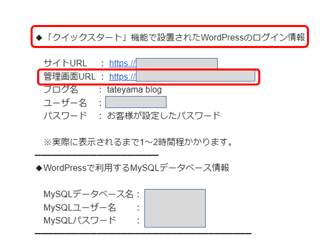 「クイックスタート機能で設置されたWordPressログイン情報」の