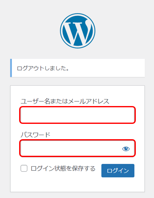 WordPress情報で記入したメールアドレスとパスワードを入力して
