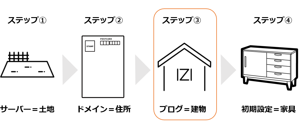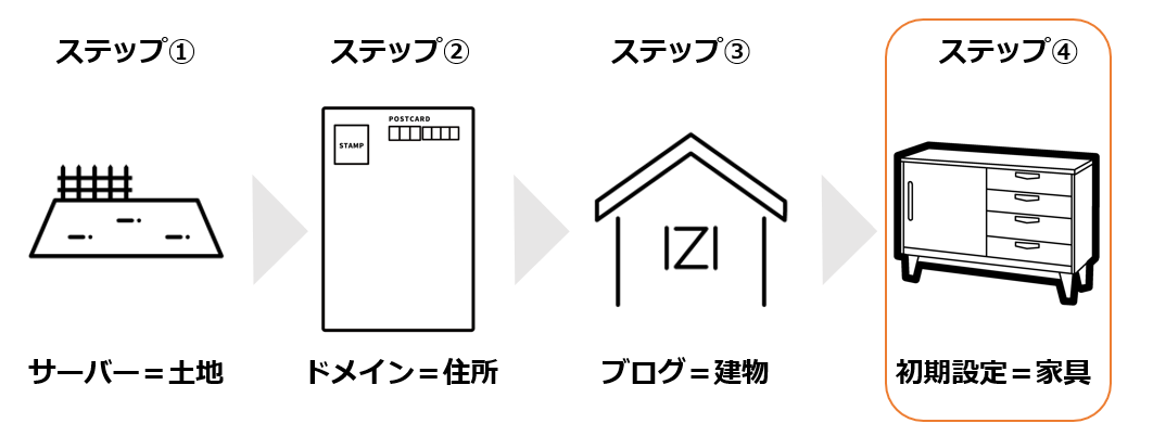 ステップ④「WordPressの初期設定=家具」の設定します。
