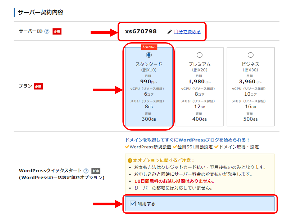 プラン : 個人ブログであれば「スタンダード(旧X10)」でOK!