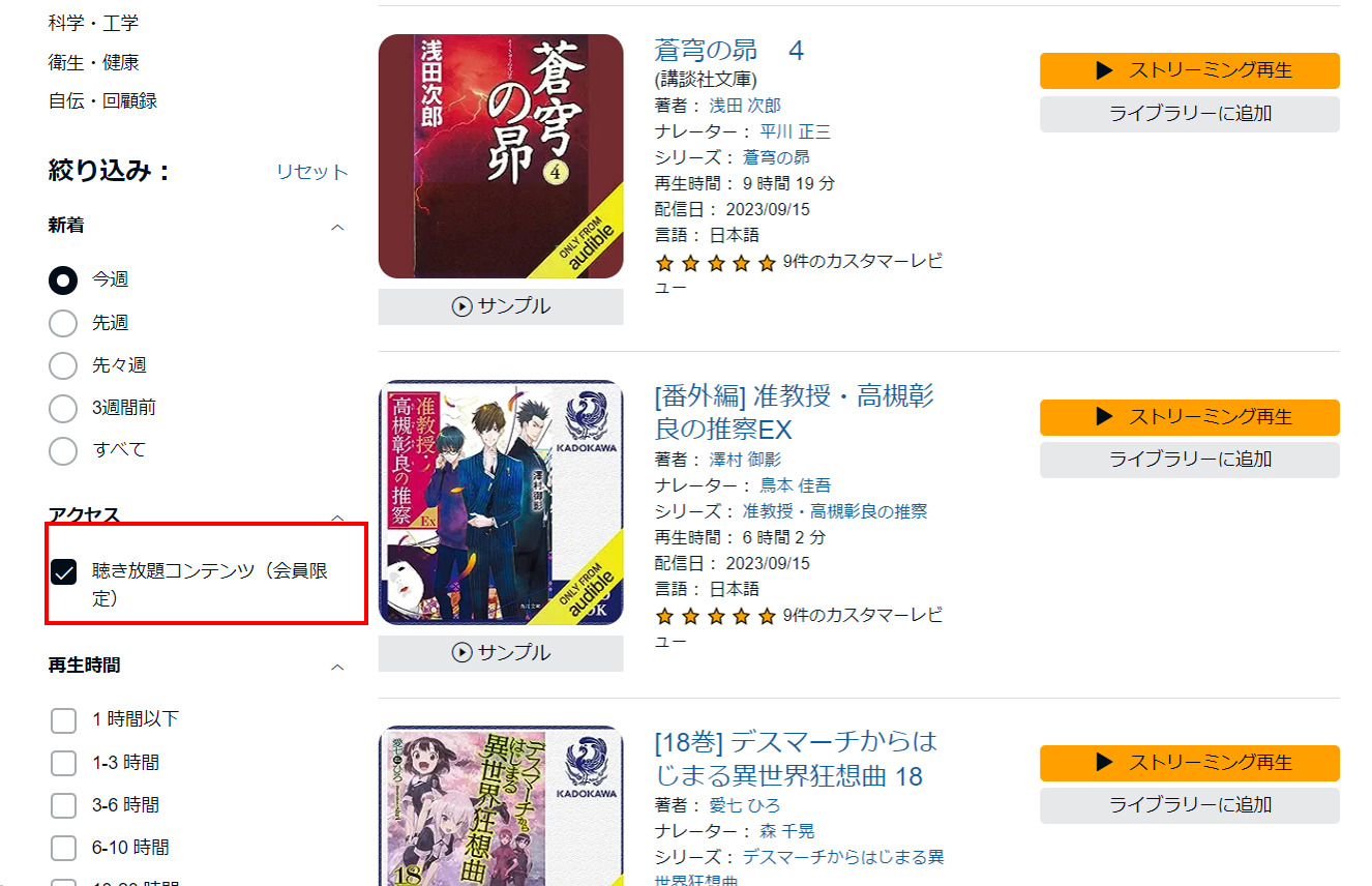 「聴き放題」対象商品を選ぶ