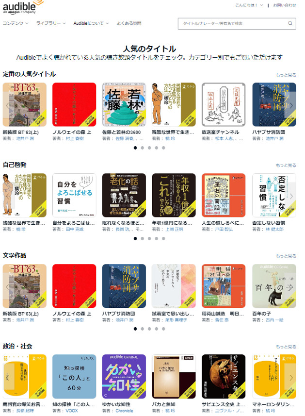 「Amazon Audible」にはどんな作品があるの?